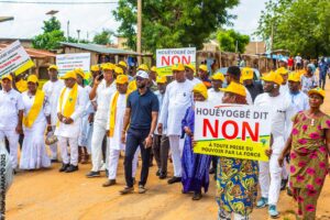 La commune de Houéyogbé a envoyé un message puissant et unanime ce vendredi 12 décembre 2025. À travers une marche et une grande et émouvante mobilisation à la place du « Monument » de SE, les citoyens,tout bord politique, se sont dressés collectivement pour dire NON à la prise de pouvoir par la force et réaffirmer leur soutien total au Chef de l’État Patrice Talon, suite à la tentative de coup d’État manquée du 7 décembre dernier.